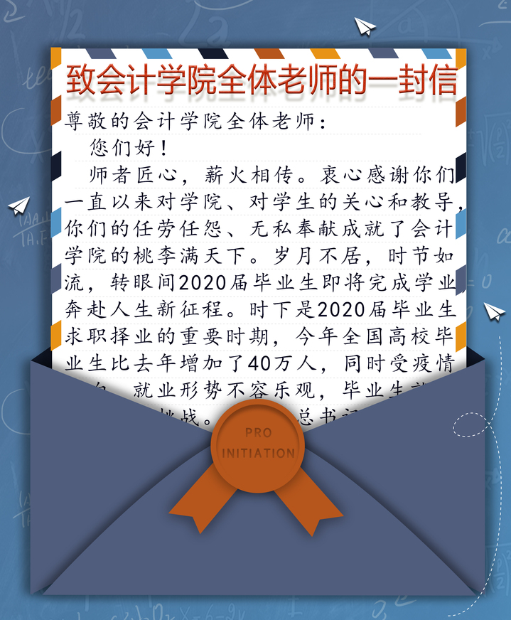 学院把提升就业质量作为2020年重点工作,成立双组长制的就业工作领导小组全面落实就业工作“一把手”工程。制定就业工作方案,划拨就业工作专项经费,推出就业工作考核激励制度。深化“1+X”协同育人体系,横向建立“就业指导中心—院系—教师—辅导员—党团骨干—毕业生”的“一站式”就业指导服务机制,明确研究生导师是研究生就业工作第一责任人,通过制定激励考核制度以及评优表彰等方式促进教师发挥对毕业生的就业指导和帮扶。纵向发挥校外导师、校友、家长和用人单位资源,多方联动,进一步拓展校企合作和校外实践基地。在疫情期间发出“云倡议”,针对当前的就业形势,通过《致会计学院全体教师的一封信》、《致社会各界用人单位和广大校友的一封信》等形式凝聚校内外力量,拓展资源,精准帮扶,助力毕业生走好离校前最后一公里。