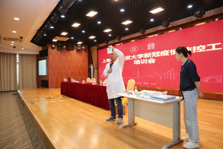 为贯彻落实上级关于新型冠状病毒肺炎疫情防控的有关要求,切实加强疫情防控相关知识和技能培训,全力做好学生集中返校开学准备。5月8日下午,学校新冠疫情防控工作培训会在信息楼507报告厅举行。松江区疾控中心副主任郭晓芹、松江区疾控中心传染病防治科副主任吴毅凌、松江区卫健委监督所监督员章婷婷、松江区永丰街道社区卫生服务中心副主任黄新军等专家作工作培训,学校机关党员志愿者、保卫人员、医务室全体人员及其他参与疫情防控工作的相关人员70余人参加培训会。
