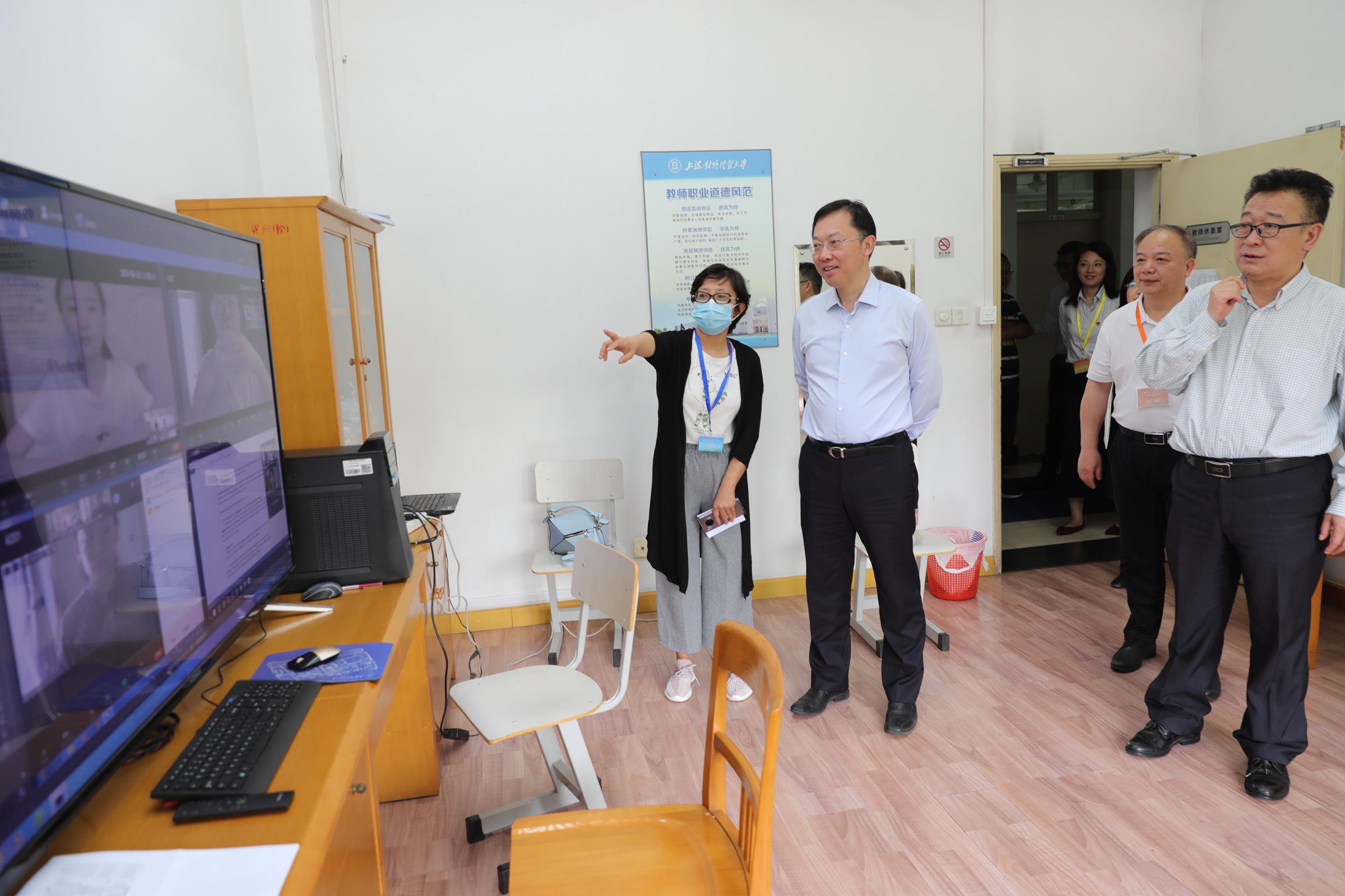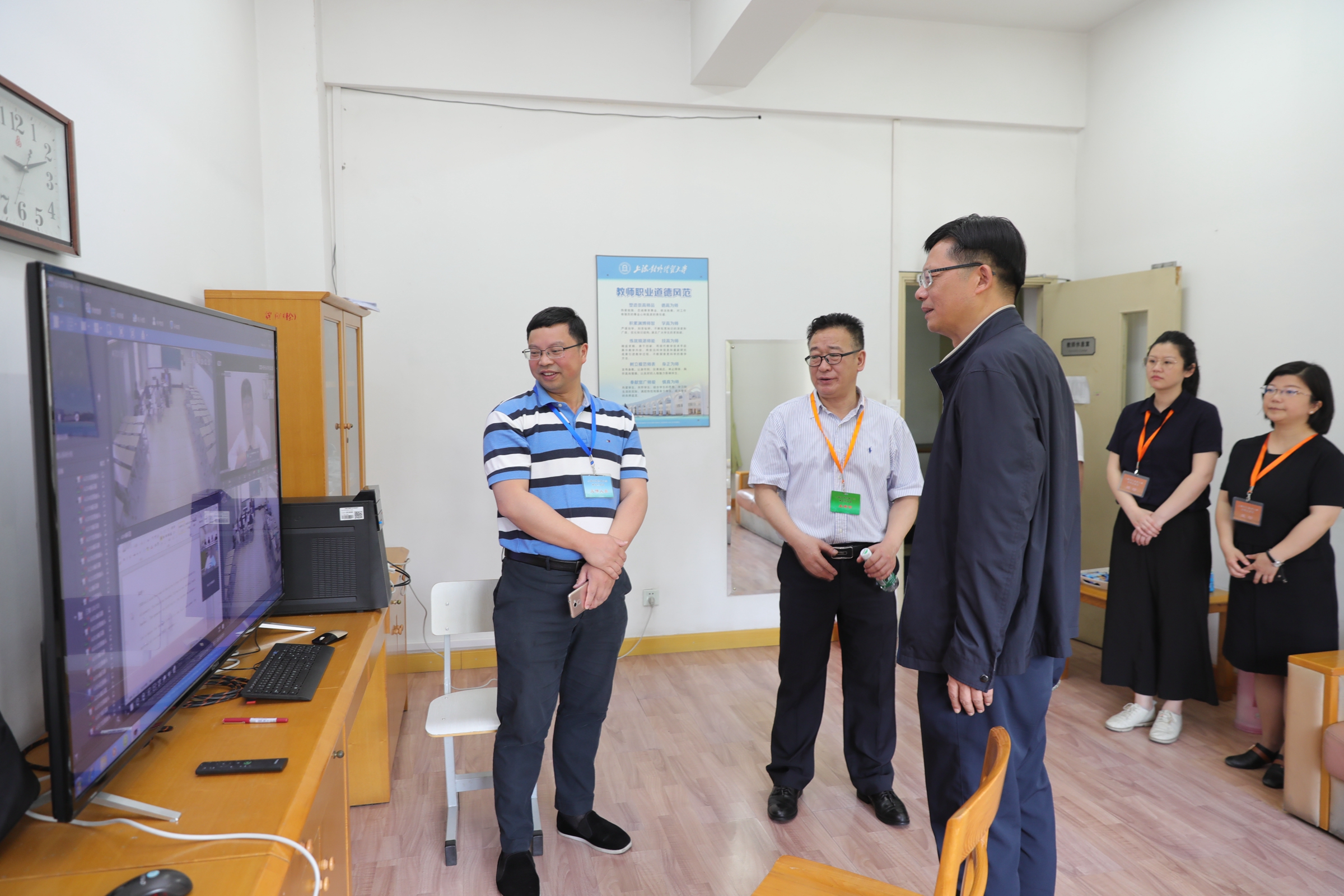 根据学校疫情防控工作要求,2020年研究生复试首次采用远程网络复试形式。学校高度重视此次复试工作,校党委书记殷耀、校长汪荣明担任校招生领导小组组长。在复试过程中,殷耀、汪荣明巡视考试现场,检查了考试设备运行、考场秩序保障、网络复试安排、后勤安保支撑等工作情况,并关心慰问了工作人员。副校长张道方主持并全程参与复试工作。