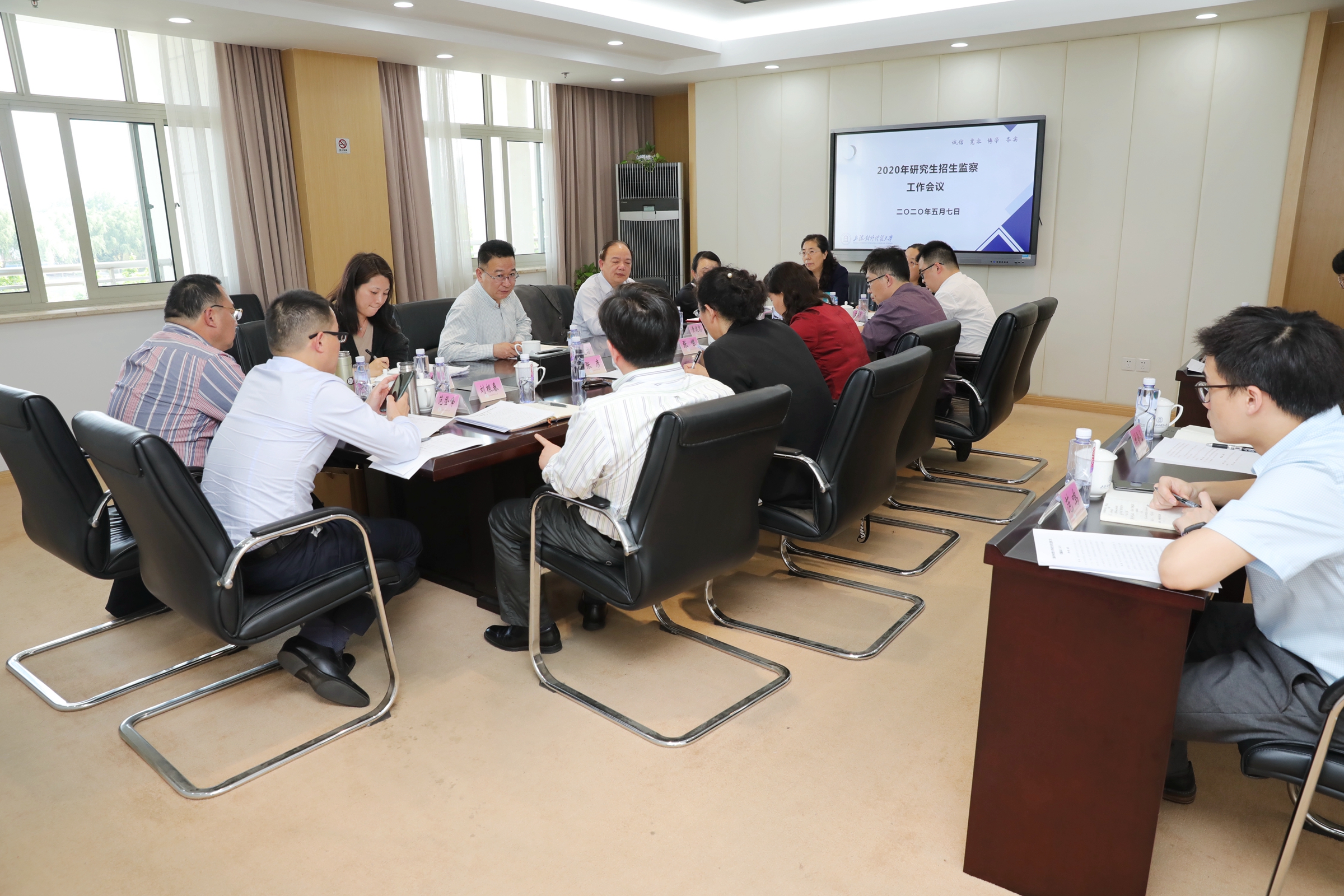 为了保证此次复试工作顺利开展,学校成立了研究生招生工作组、研究生招生监察工作组和研究生复试工作组。三个工作组的全体成员全程参与了复试工作。学校分层分类开展了全员、全过程、全方位的复试相关工作。为落实教育部复试工作和上海市有关疫情防控工作要求,召开研究生复试工作会议和研究生招生监察工作组会议,制定复试工作方案,压实责任、落细落实。研究生院和信息技术中心举办多场培医务室、资产管理处等部门,严格落实学校防疫工作要求,做好复试考场的清洁消毒、秩序维护和服务保障。