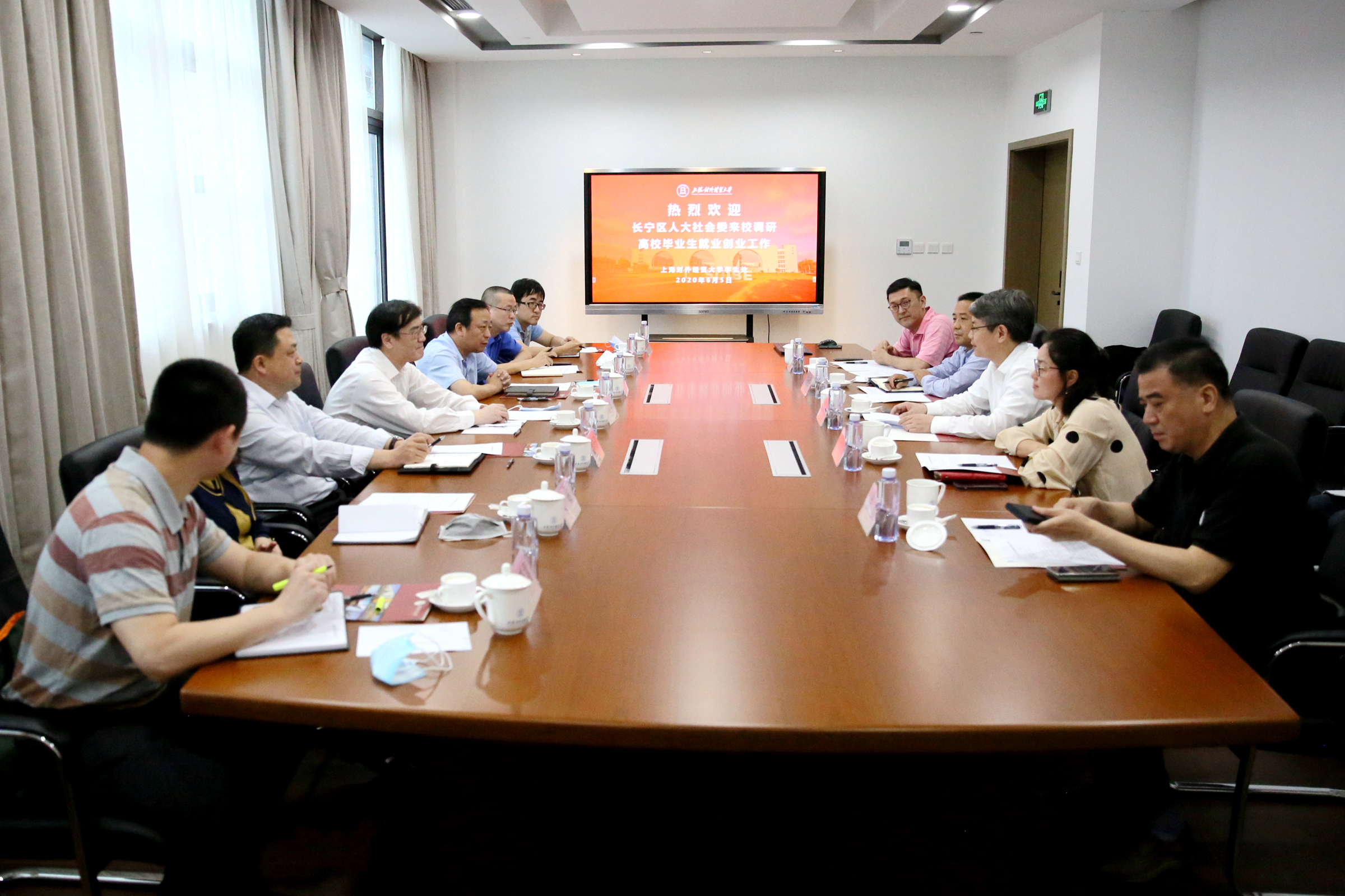 6月5日下午,长宁区人大社会委和人社局一行7人来我校调研高校毕业生就业创业情况。校党委副书记、副校长祁明在古北校区会见了调研组,学(研)工部部长、学生处处长许继亮、学生就业指导中心、创业学院相关人员参与调研。