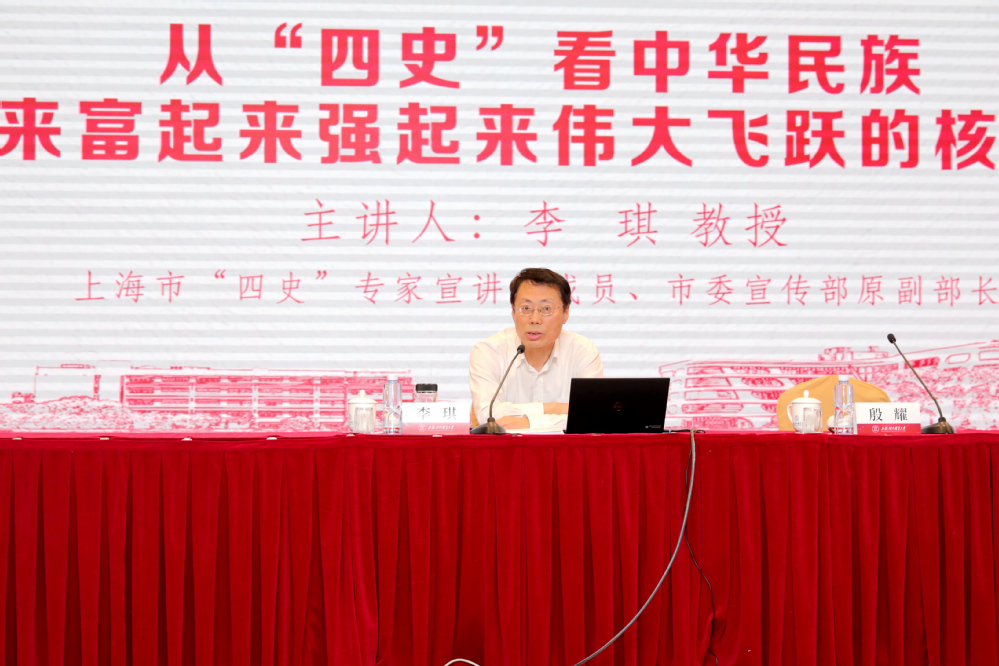 为贯彻落实市委和市教卫工作党委关于“四史”学习教育的相关要求,进一步建立健全“不忘初心、牢记使命”长效机制,根据学校“四史”学习教育实施方案安排,6月9日下午,学校党委理论学习中心组召开学习(扩大)会,邀请上海市“四史”专家宣讲团成员、上海市社联副主席、上海市中国特色社会主义理论体系研究中心副主任李琪教授作题为《从“四史”看中华民族站起来富起来强起来伟大飞跃的核心要义》的报告。党委理论学习中心组成员、全体中层干部、统战系统成员、学校第五期青年骨干教师培训班学员参加会议。会议由校党委书记殷耀主持。