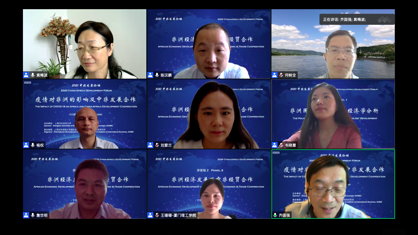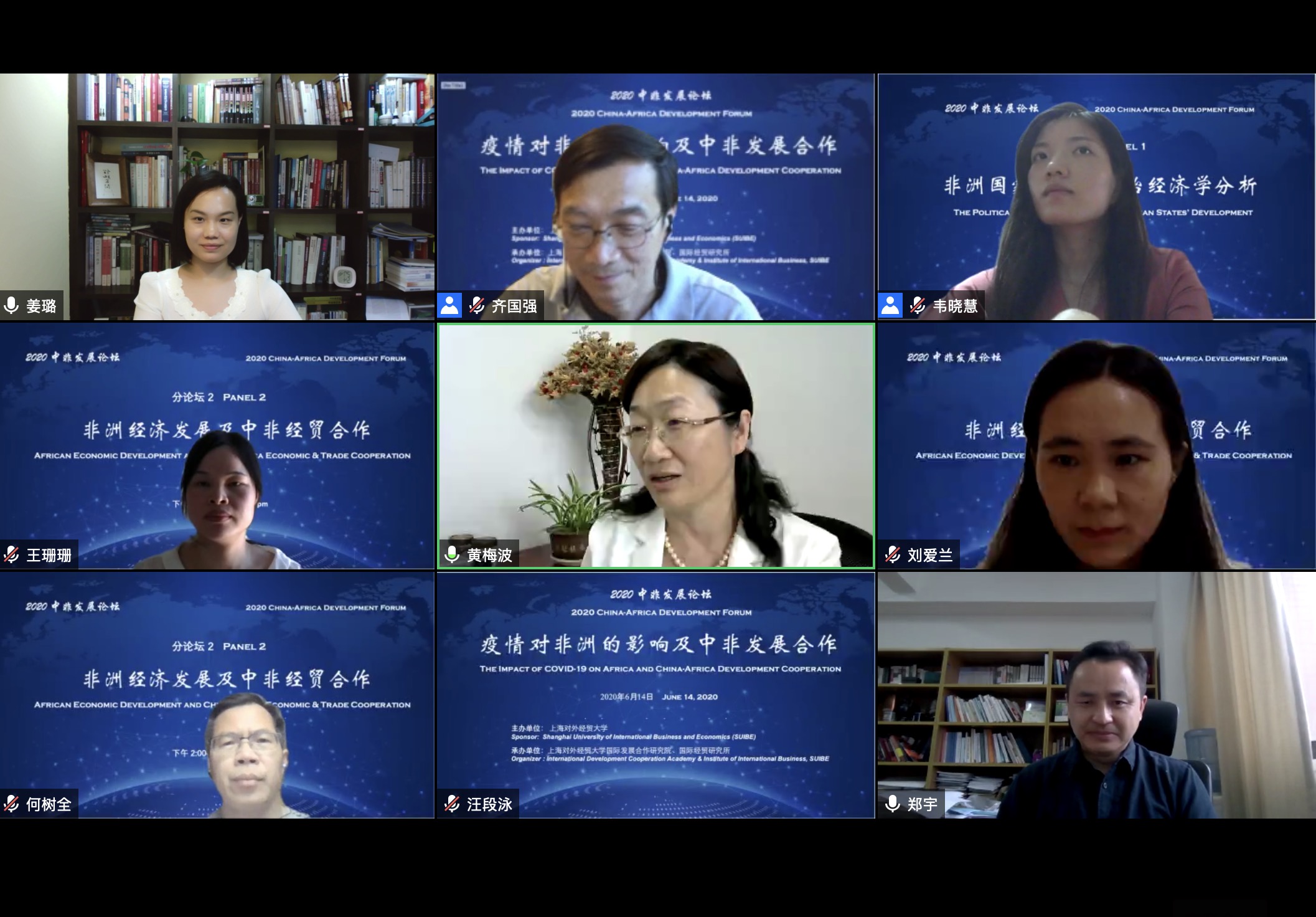 6月14日,由上海对外经贸大学主办,上海对外经贸大学国际发展合作研究院、国际经贸研究所承办的“2020中非发展论坛:疫情对非洲的影响及中非发展合作”研讨会通过视频会议形式举行。中国社科院西亚非洲研究所、浙江师范大学非洲研究院、北京大学非洲研究中心、上海师范大学非洲研究中心、广东外语外贸大学非洲研究院等中国重要非洲研究机构负责人,以及复旦大学、南开大学、厦门大学、上海大学、上海外国语大学、商务部对外贸易与经济合作研究院等在非洲经济研究领域知名专家学者100余名上线出席本次网络会议并对疫情下的中非合作问题进行了深入探讨。
