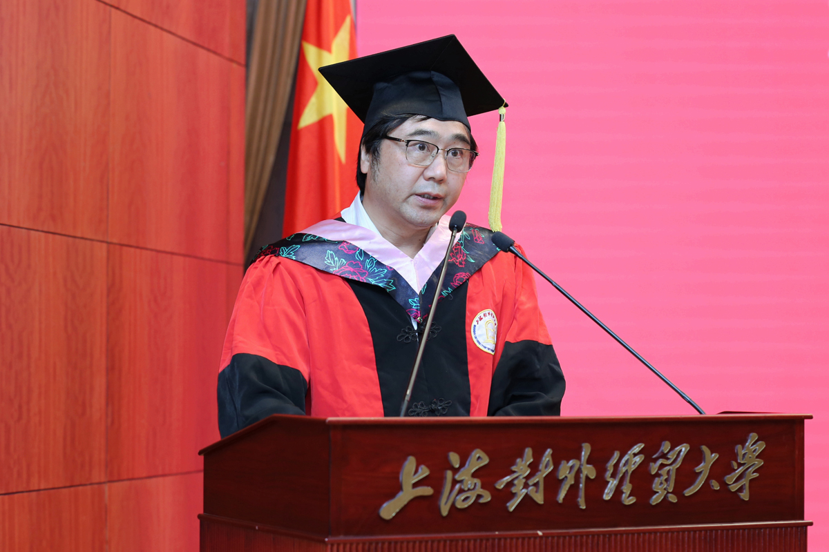 亲爱的同学们,告别熟悉的校园,告别朝夕相处的同学,告别这个让人留恋的人生驿站,无限广阔美好的前程正在你们前方。你们是上海对外经贸大学历史的传承者,同样是这所学校历史的创造者。一届又一届的毕业生以优异的表现给学校增添了熠熠光彩,而你们也将去向一个更大的世界,做新时代的探索者、新世界的开拓者。再一次真诚地祝福大家,祝你们鹏程万里、展翅翱翔!