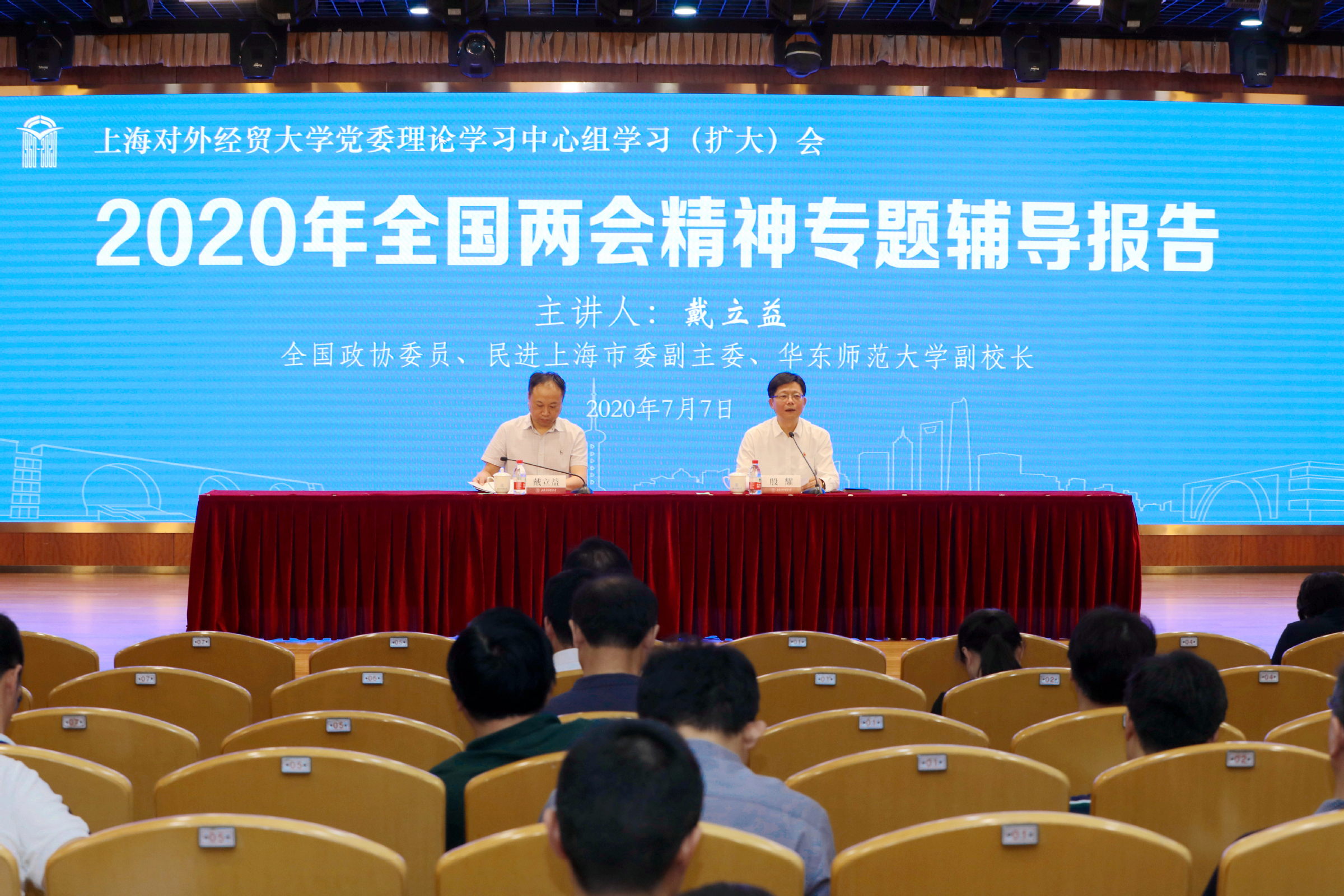为了进一步深入学习2020年全国“两会”和习近平总书记重要讲话精神,7月7日上午,学校党委理论学习中心组召开学习(扩大)会,邀请全国政协委员、华东师范大学副校长戴立益教授作全国“两会”精神专题辅导报告。党委理论学习中心组成员、全体中层干部、校第五期青年骨干教师培训班学员参加会议。会议由校党委书记殷耀主持。