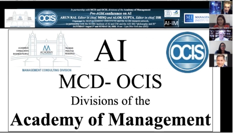 8月1日-2日,由美国管理学会(Academy of Management, AOM)的管理咨询分会 (Management Consulting Division, MCD)、组织沟通与信息系统分会(Organizational Communication and Information Systems, OCIS)主办,我校人工智能与变革管理研究院协办的2020美国管理学会年会前会-2020人工智能大会在线上举办。信息系统研究领域顶级刊物《MIS Quarterly》主编Arun Rai教授、《Information Systems Research》主编Alok Gupta教授应邀为大会作主旨报告,《MIS Quarterly》前主编Carol Saunders教授以及来自MISQ, ISR, JMIS(Journal of Management Information Systems), Management Science等顶级期刊的多名资深编辑参加会议并作学术报告。