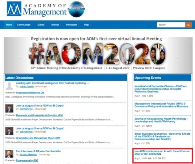 2020美国管理学会年会前会-人工智能会议在线举办