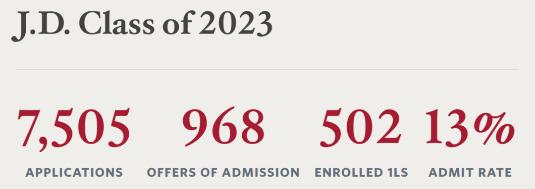哈佛大学法学院创立于1817年,是美国最古老的法学院。J.D(Doctor of Jurisprudence)学习项目系以提供三年美国基础法学教育为目的,申请者必须具有学士以上的学位,原则上不具有法律背景,并以美国学生为绝大多数,少数非美国籍者。本次申请季共有7505个申请者,录取率仅为13%,其中非美国籍国际学生仅有17位录取者。