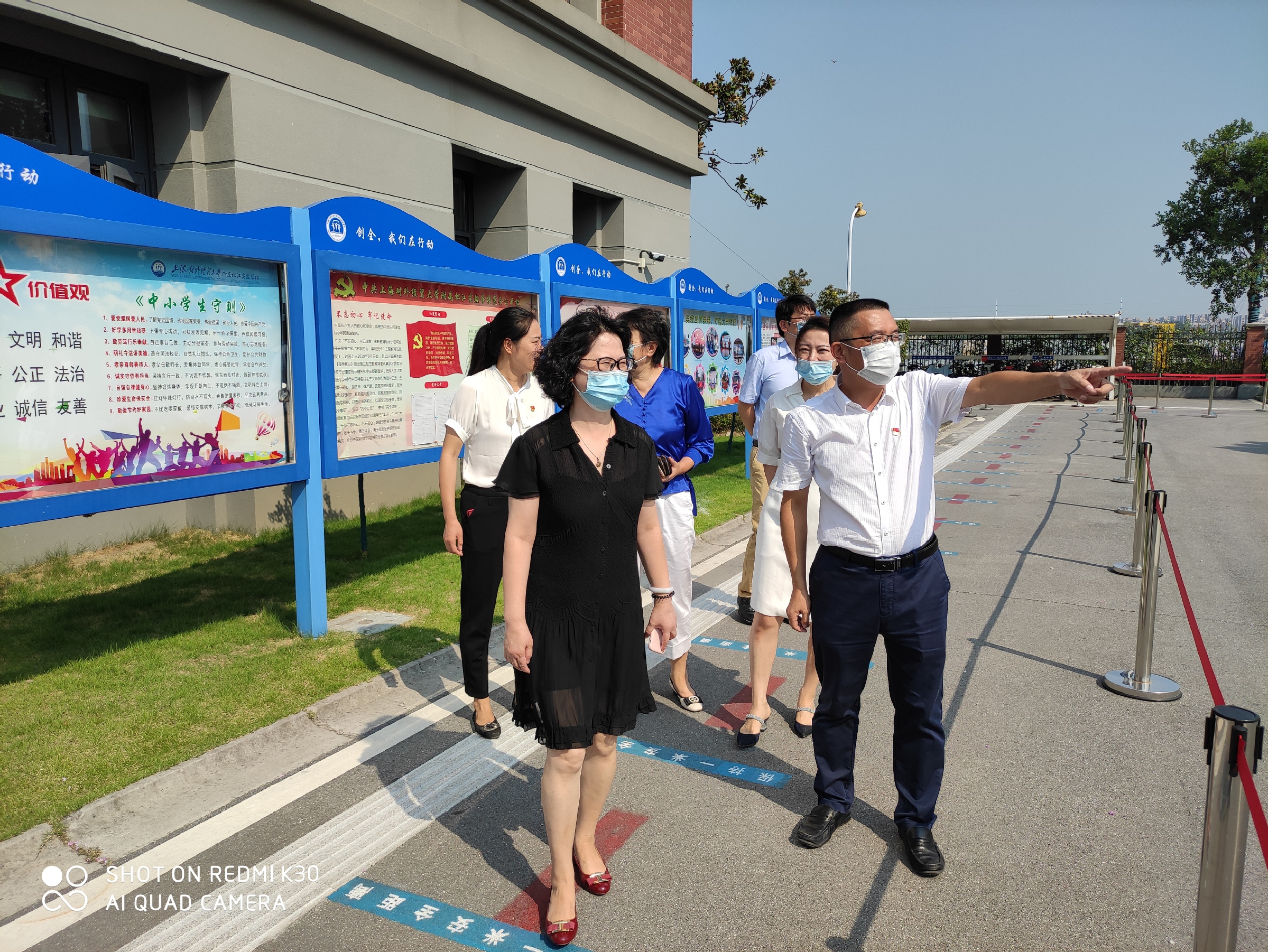 在中小学新学期开学伊始和第36个教师节即将来临之际,9月7日上午,副校长陈洁赴松江附属实验学校走访指导学校开学工作,实地察看了学校疫情防控情况,了解学校疫情防控具体措施;走访了小学部教学楼,巡视了各班级教学情况,了解学校教育教学具体措施,向附校教职工提前致以节日的祝贺。高教所人员和附校领导陪同走访。