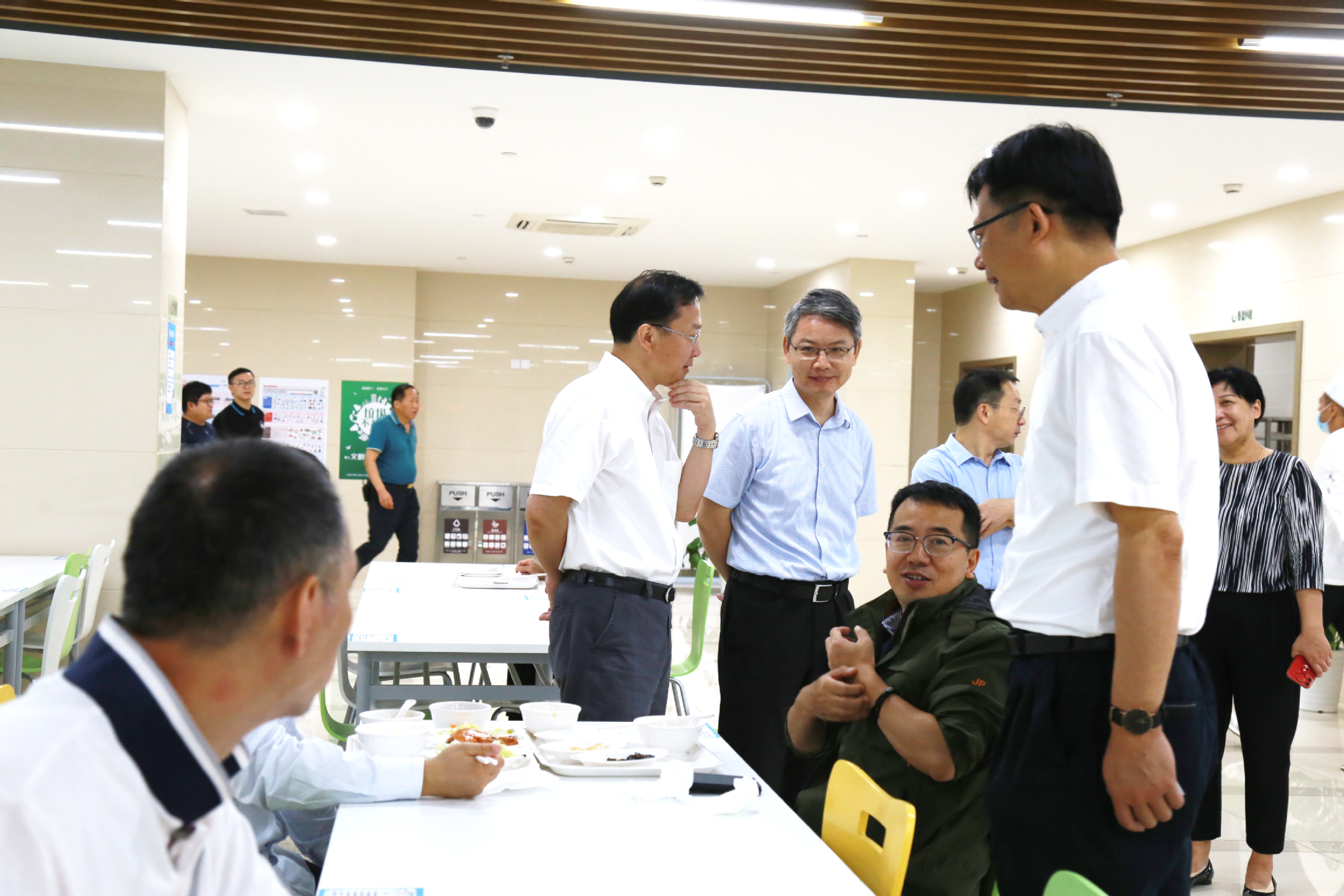 校领导一行来到学生事务中心、综合楼、食堂等场所,查看了古北校区整体环境和暑期各类工程完成情况,实地了解相关工作准备情况,详细询问宿舍安排、学生入住体验、疫情防控措施、师生就餐方案和伙食准备等情况,要求相关部门细化校内应急处置方案,加强对师生关心关爱,加强正面宣传引导,推出更多暖人心的举措,全面做好学生入住准备工作,为师生营造温馨的氛围。校领导来到宿舍,亲切看望了入住的学生。
