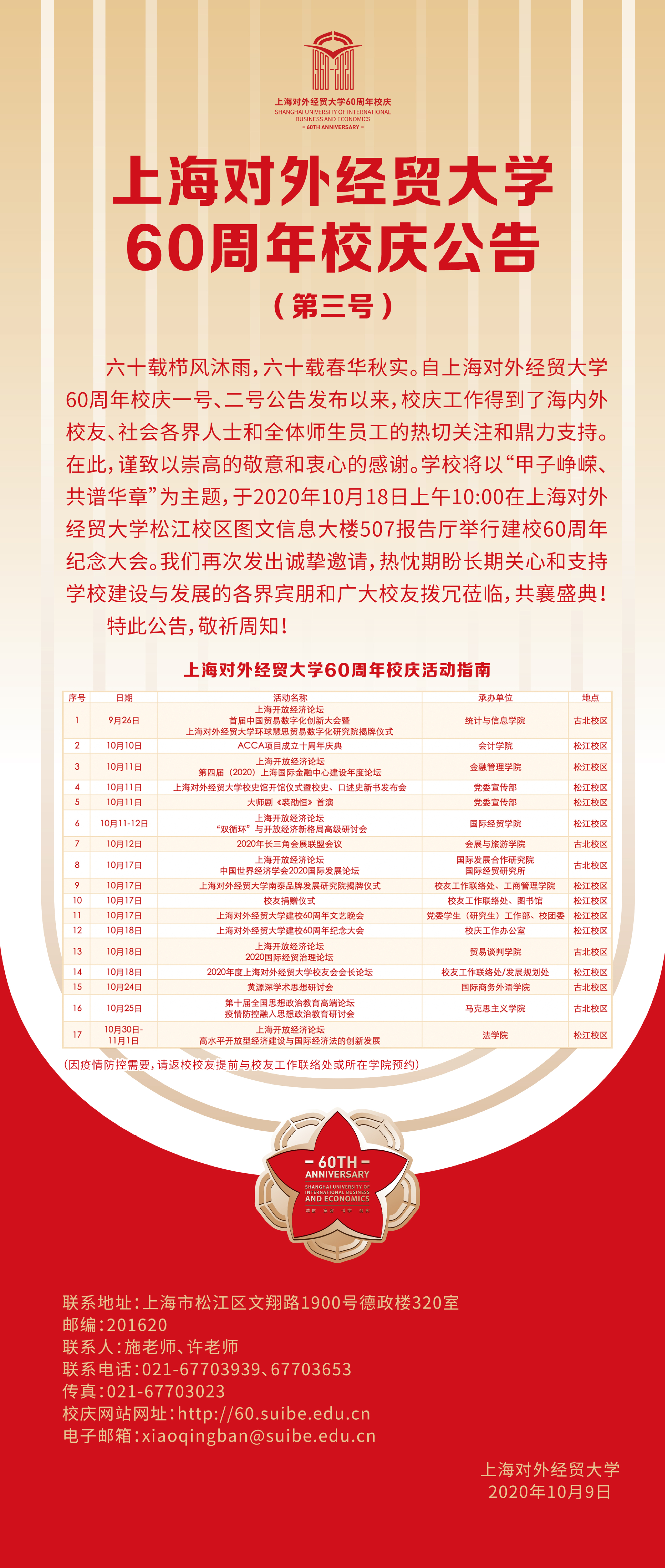 SUIBE 60 | 上海对外经贸大学60周年校庆公告(第三号)发布