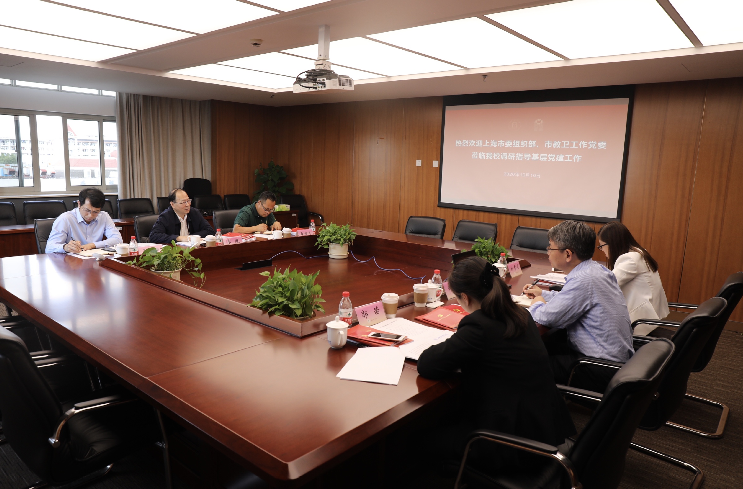 10月10日下午,市委组织部组织一处处长李微、市教卫工作党委组干处副处长王精明等一行5人来我校松江校区调研基层党建工作。校党委副书记、副校长祁明,党委组织部部长郭茜,副部长刘素贞,学校和二级单位专职组织员代表参加调研。
