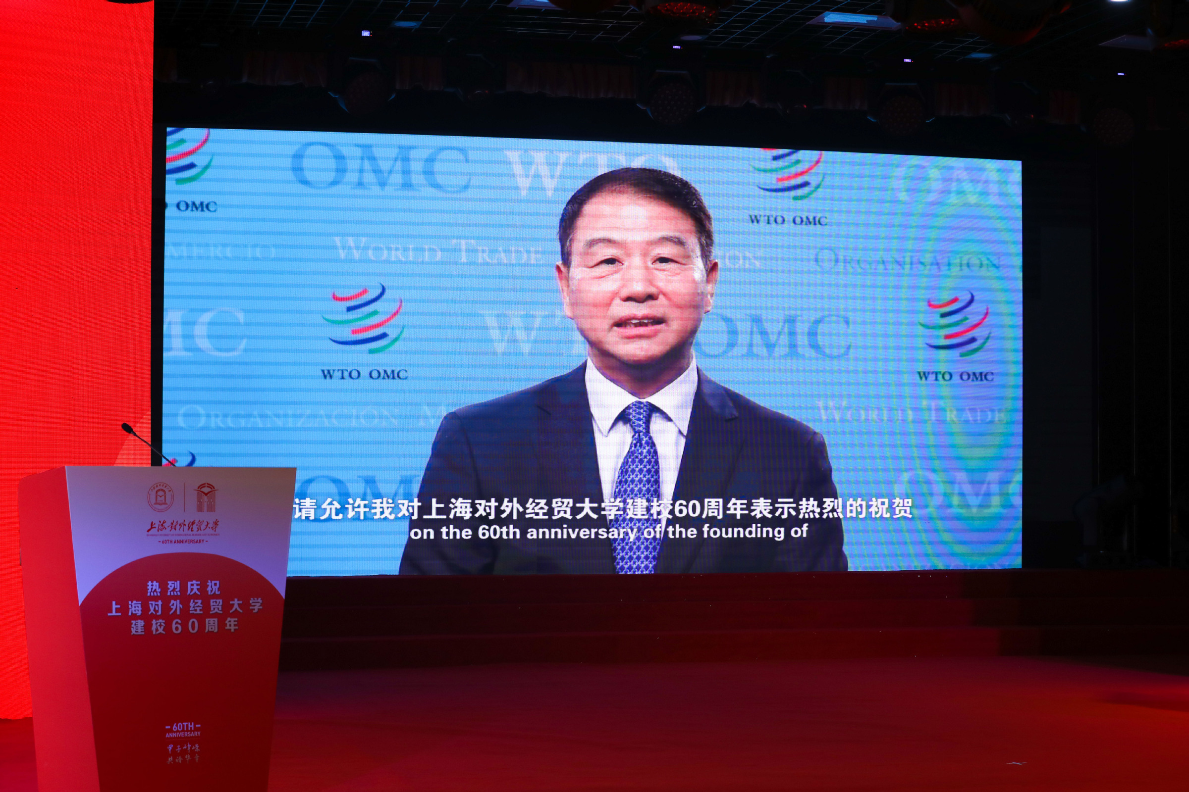 学校是国内最早开展关贸总协定和世界贸易组织研究和教育的单位之一,在该领域取得了显著成效。世界贸易组织副总干事易小准通过视频向大会致辞。他指出,上海对外经贸大学作为全球首批、中国唯一的世贸组织讲席院校,世贸组织亚太区域贸易政策新一期唯一合作伙伴,希望上海对外经贸大学继续深耕国际经贸治理领域的教学和研究,加快培养国际经贸组织亟需的高端人才,努力为解决国际经贸治理领域重大问题提供更多的“中国方案”,为推动经济全球化和国际经贸治理长远发展作出更大的贡献。易小准表示,世贸组织将继续深化和拓展与上海对外经贸大学的合作,使之成为越来越重要的国际组织人才培养基地和学术研究平台,共同为国际经贸事业发展作出更大的贡献。