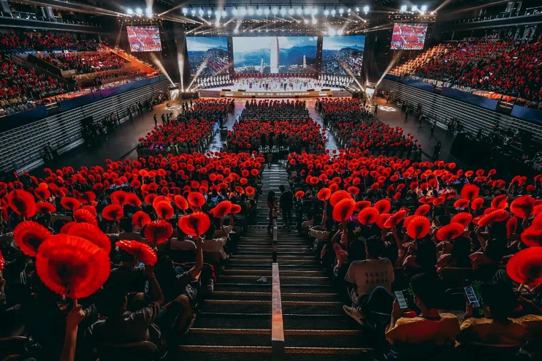 我校党委副书记、副校长祁明和校合唱团、舞蹈团232名学生,40名进博会志愿者受邀参加本次歌会。