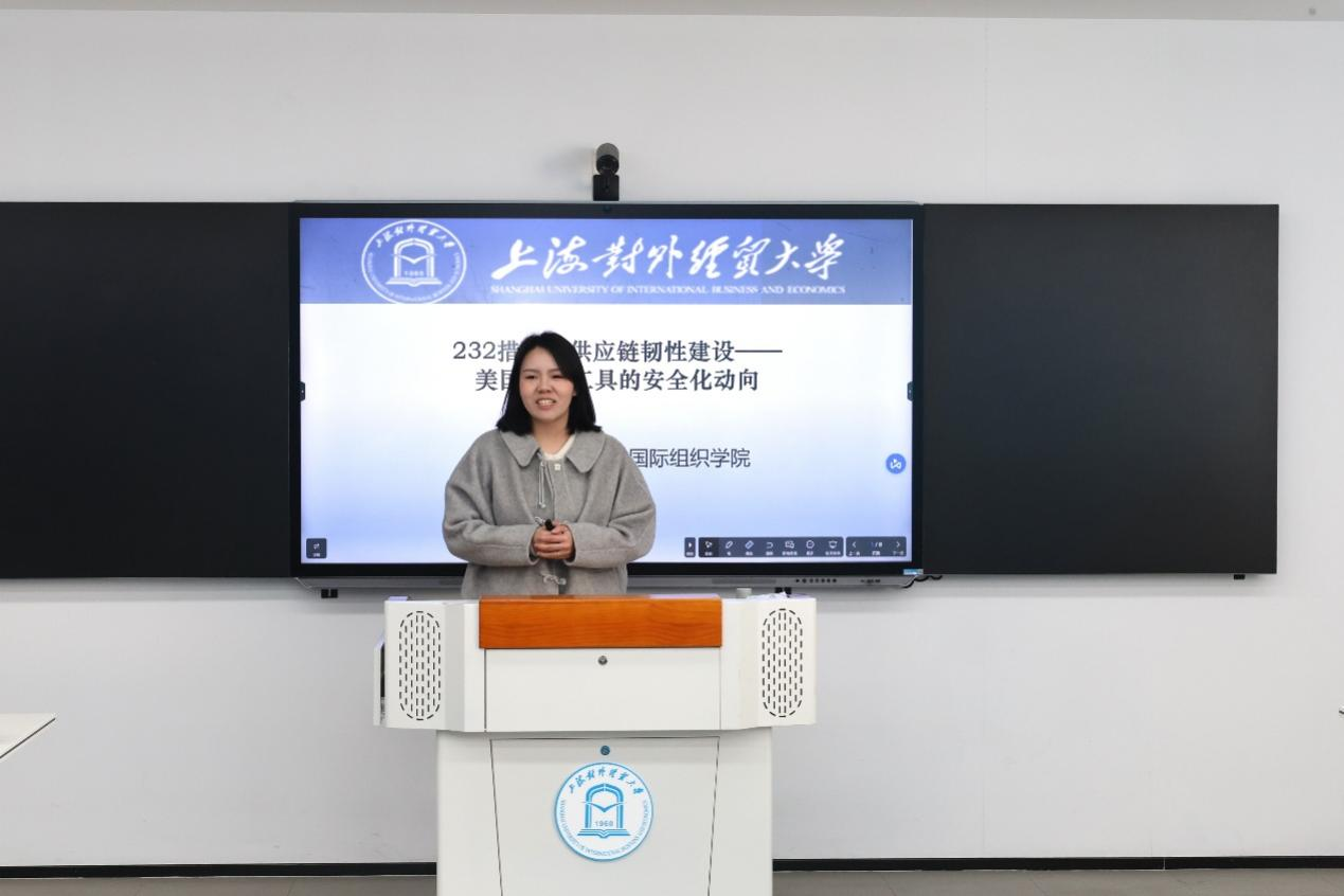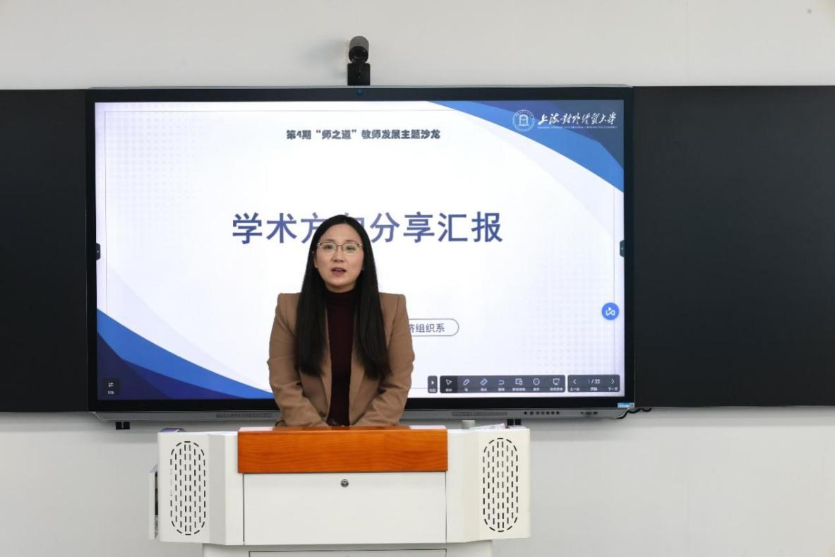 国际经济组织系新进教师邓珺之围绕区域国别经济的在地研究、俄罗斯经济、国际组织、出口管制与经济制裁等方向进行了学术汇报,并对未来教学科研方向进行了展望。学院教工联合党支部书记、国际经济组织系王思语副教授进行了回应和点评。