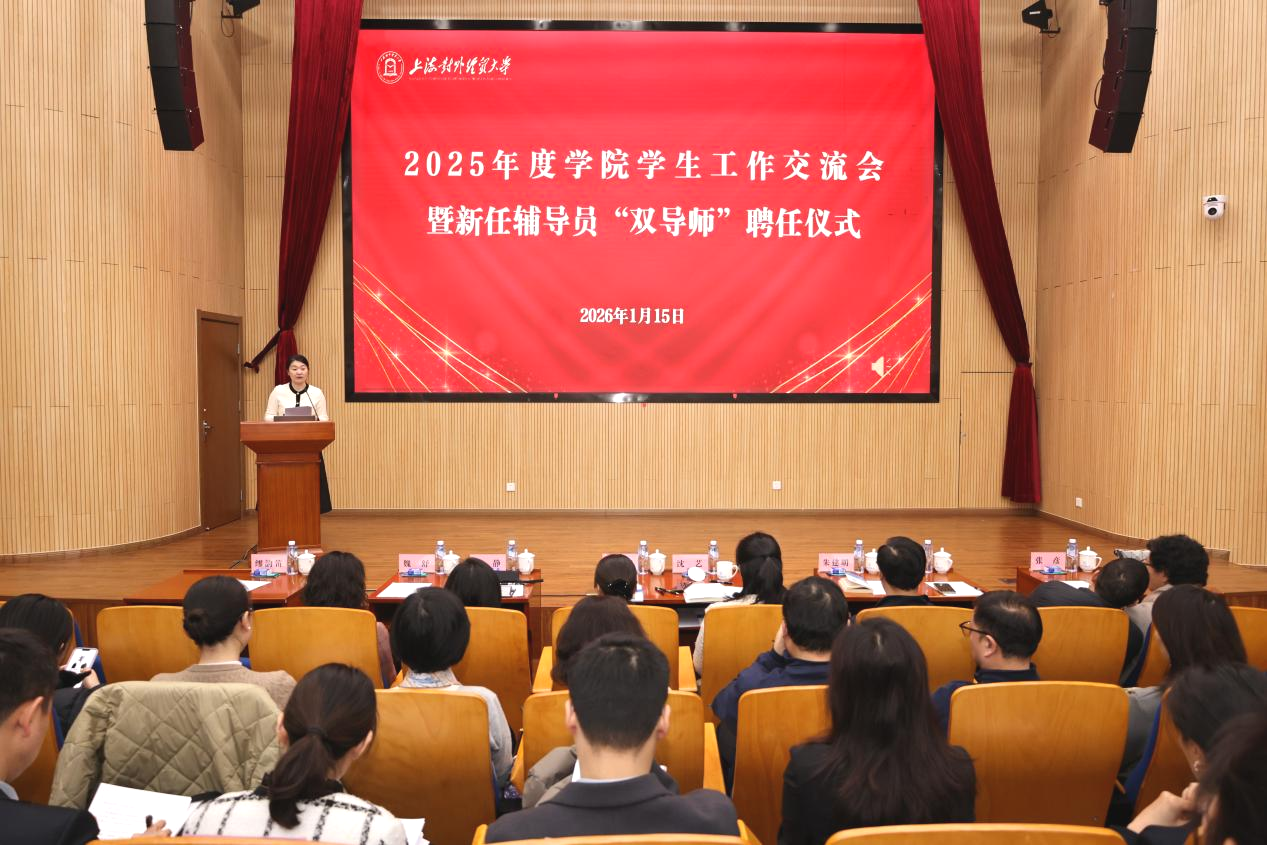 为深入贯彻落实党的二十届四中全会精神,扎实推进新时代立德树人工程,1月15日上午,上海对外经贸大学2025年度学院学生工作交流会暨新任辅导员“双导师”聘任仪式在松江校区思源报告厅举行。校党委副书记、副校长沈艺出席并讲话,相关职能部门负责人、新任辅导员所在学院党委书记以及学工系统全体教师参会。会议由党委学(研)工部部长缪韵笛主持。