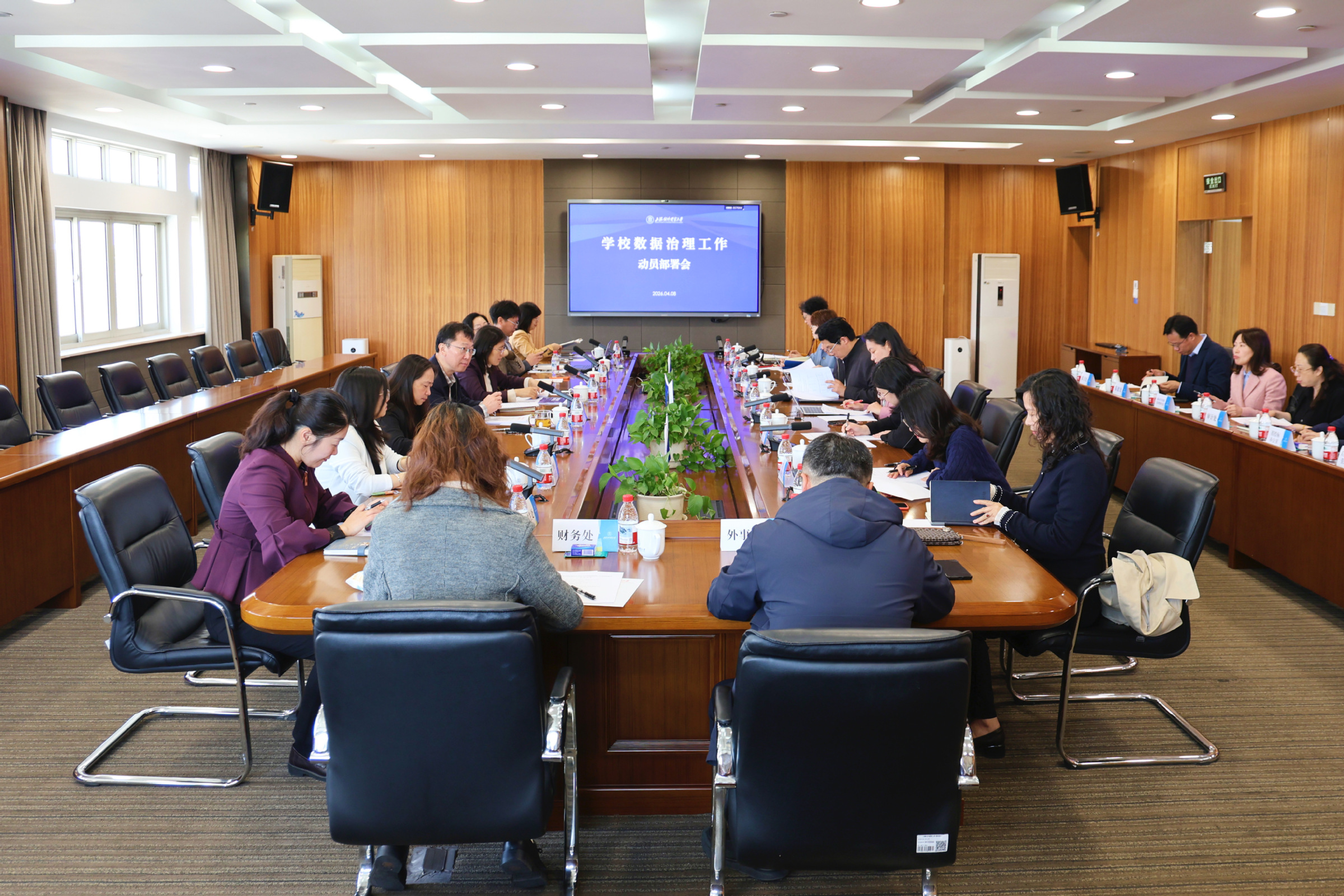 为深入贯彻落实国家教育数字化战略行动,加快推进学校治理体系和治理能力现代化,4月8日上午,上海对外经贸大学数据治理工作动员部署会在松江校区德政楼317会议室召开。校长汪荣明,副校长姜秀珍出席会议。相关职能部门负责人参加会议,共同谋划学校数据治理工作新篇章。会议由副校长姜秀珍主持。