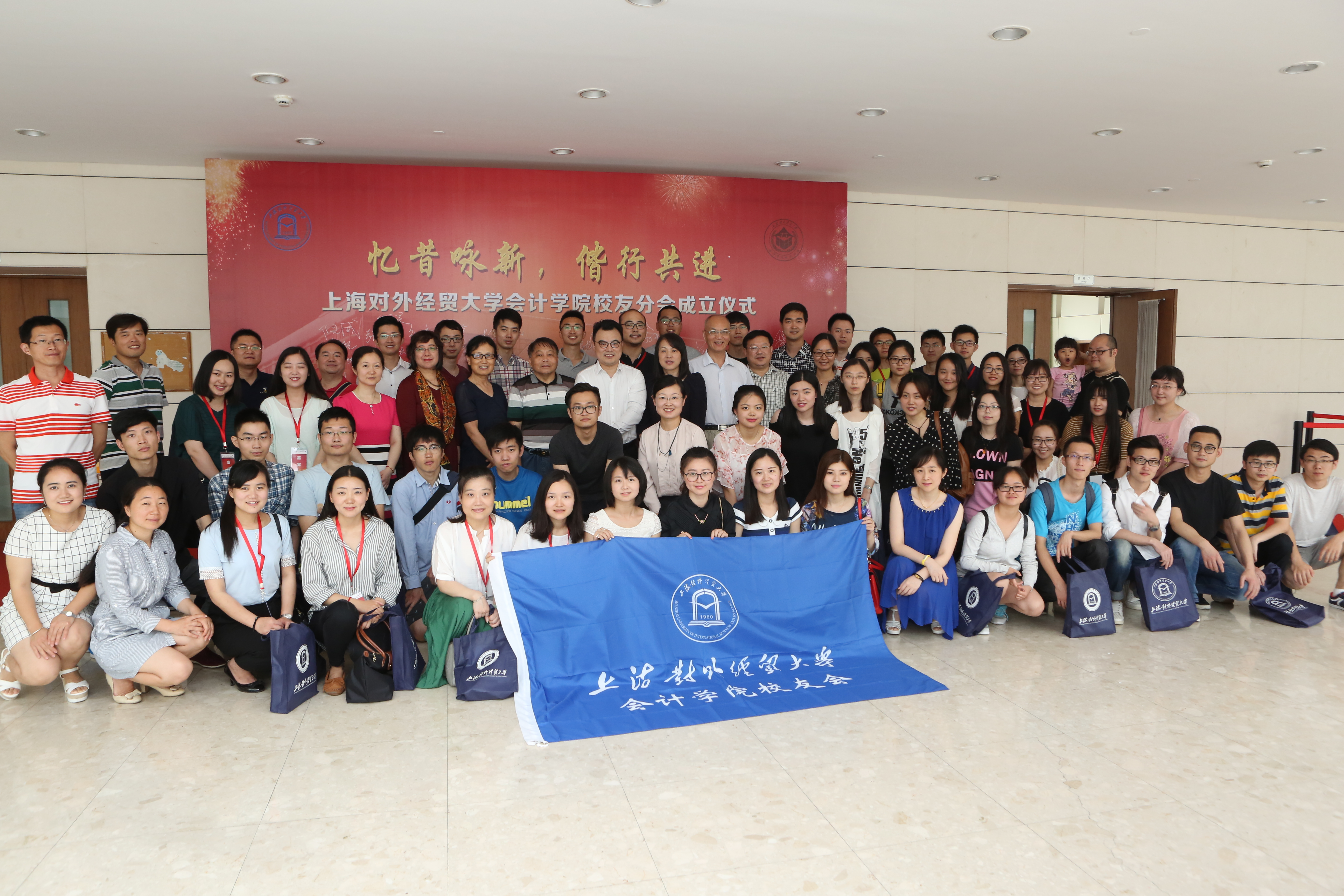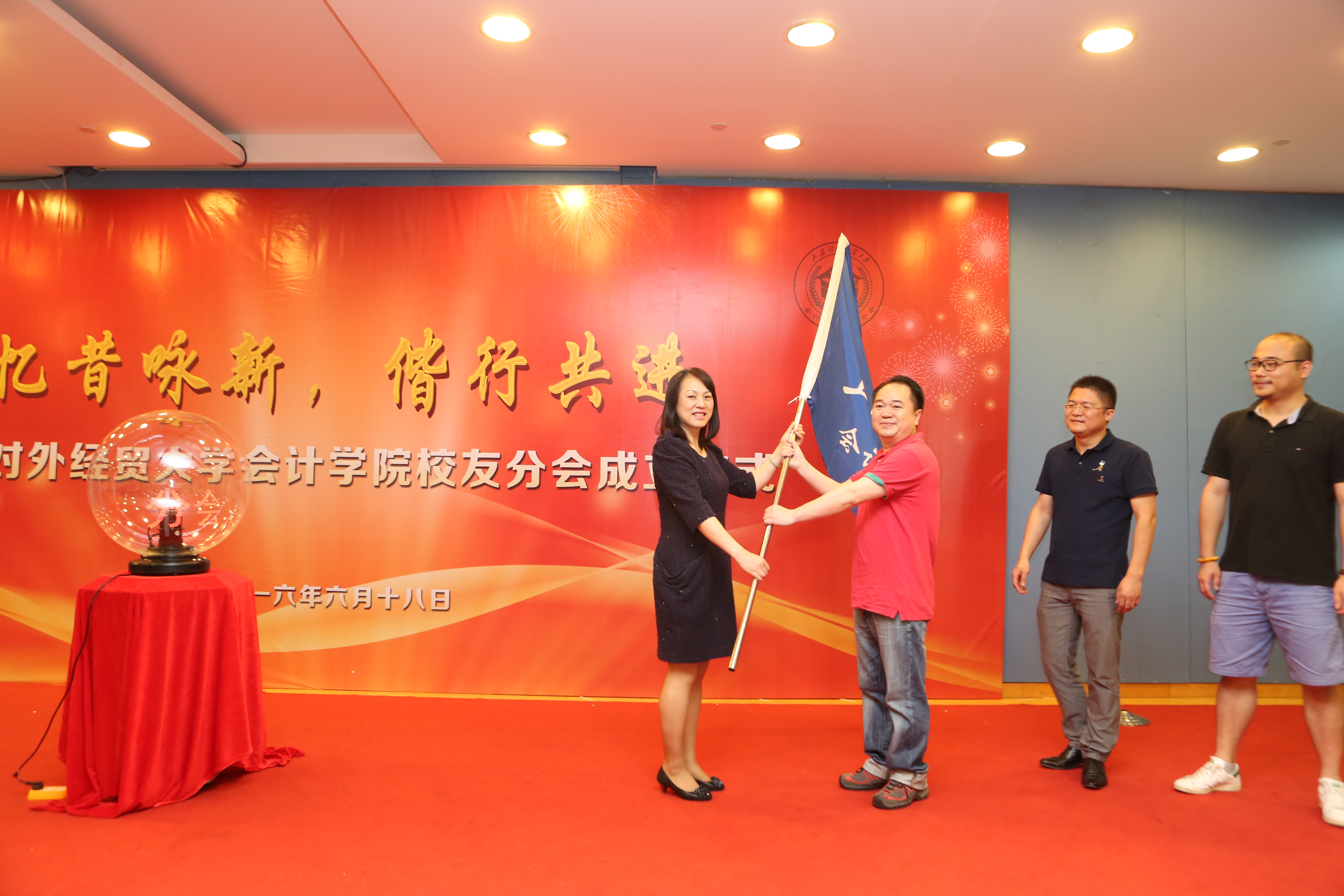 启动仪式上,谈华、晏琼和林伟雄共同点亮了象征会计学院校友分会正式成立的水晶球。随后,晏琼将“上海对外经贸大学会计学院校友会”的旗帜授予了新当选的首届理事会成员。