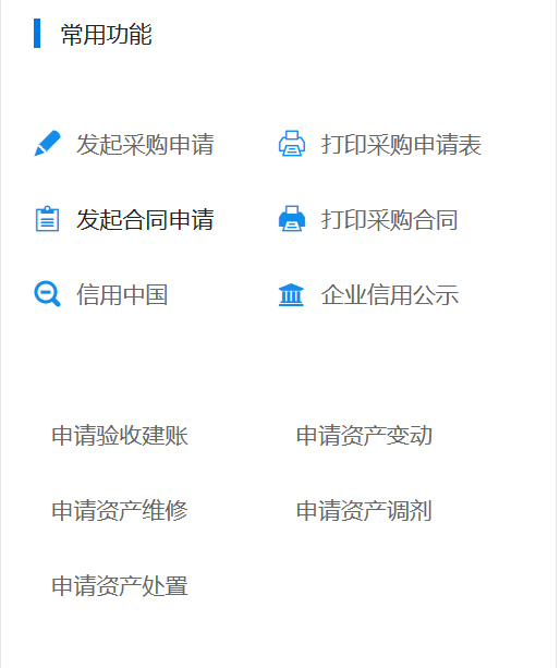 在快捷栏下,提供各种业务的快捷功能,可根据需求点击进行查看、办理等操作,如图所示:
