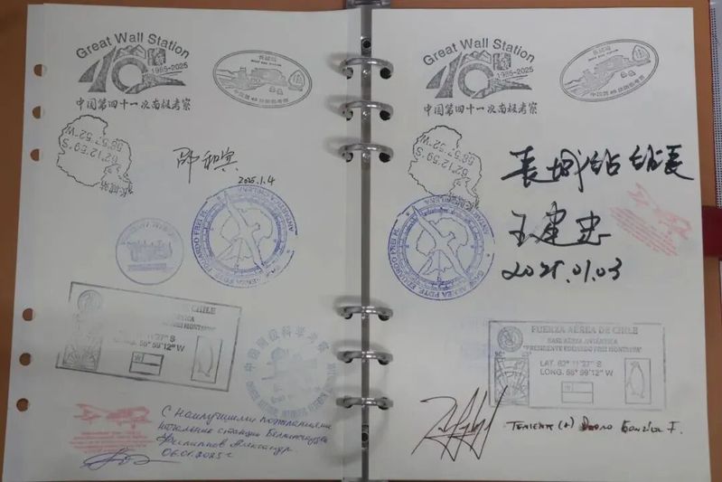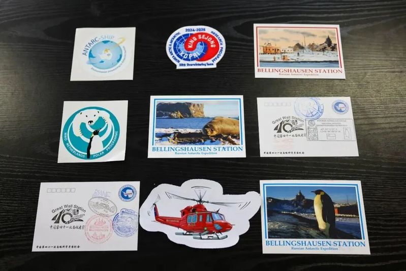 中国、智利、俄罗斯科考站的南极纪念印章与站长赠言