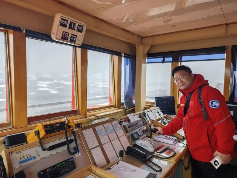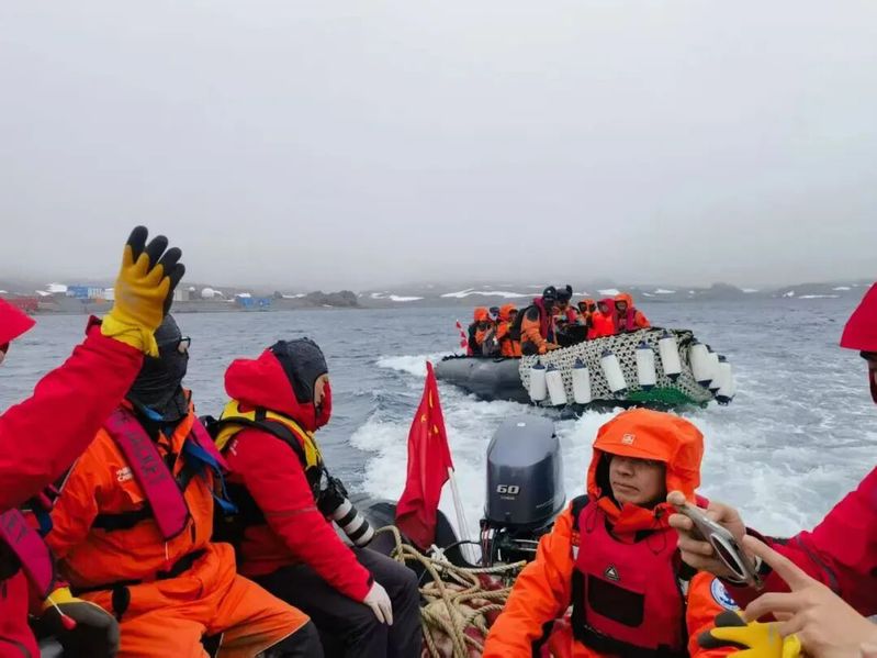 南极洲,气候酷寒,多烈风,在外出科考过程中经常会受到恶劣天气的影响。有时海面会突然掀起十级大风,大风会带来浓雾,能见度极低。同时,臭氧层稀薄加上大片冰雪的反射,南极洲的紫外线非常强烈,科考队员们需要涂上厚厚的防晒霜,全身上下遮挡得严严实实。为了保护南极洲生态的完整性,队员们还需时刻留意脚下的足迹,避免破坏脆弱的南极植被。天气的变化多端也使得原定的计划难以进行。因为海况差、能见度低、风浪大等原因,原计划乘快艇跨海访问韩国站的行程就三度推迟。客观条件的限制也让吴老师格外珍惜与他国科考人员的交流机会。