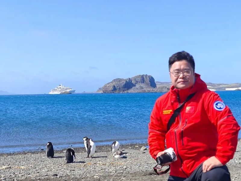 “当在乔治王岛上空透过飞机舷窗眺望到南极洲的第一座浮冰与礁石时,我的呼吸和心跳都变得急促起来”;“我见证了中国游客冒着漫天风雪在长城站高唱国歌和列队向国旗致敬的动人场景”;“在访问外国科考站时我满怀国家使命感与自豪感”;“我在地球最南端亲历了一次难忘的爱国主义教育洗礼……”回忆起这些瞬间时,吴宁铂老师难掩激动之情。
