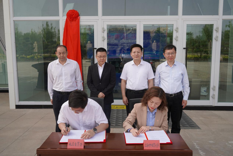 在出席领导的共同见证下,学校与喀什自贸片区代表签署了合作协议,汪荣明、孟庆源、叶霖霖、马继明为研究院揭牌。校地双方未来将重点在中亚经贸合作、进口资源加工、国际物流通道建设等领域合作,搭建经贸数据交互平台,促进两地优化资源配置、实现优势互补。双方还将通过建立“研究-试点-推广”的成果转化机制,让政策创新案例在自贸区喀什片区先行先试,形成可复制、可推广的先进经验。
