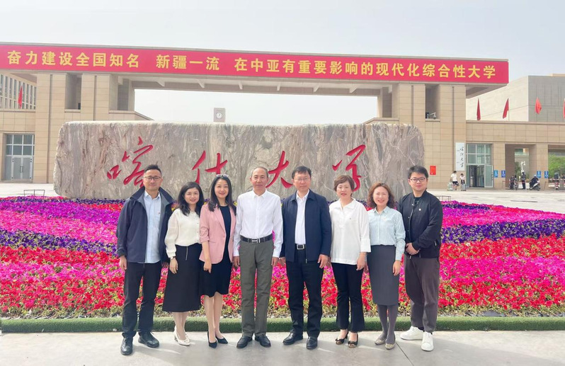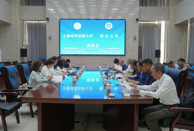 5月16日,校长汪荣明一行访问喀什大学,并慰问学校援疆银龄教师方旭光教授。喀什大学党委书记丁邦文出席并主持座谈会。座谈期间,汪荣明表示,喀什大学是一所基础扎实、学科齐全、定位清晰、战略地位重要的综合类大学,双方合作前景广阔,期待双方聚焦高素质国际经贸人才培养,开展深入的跨学科合作。丁邦文介绍了学校相关情况,回顾了两校合作历史与成果,并期待双方进一步合作推进学科建设等。与会人员围绕进一步落实落细双方的战略合作进行了深入交流。座谈前,丁邦文陪同汪荣明一行参观了喀什大学三校区沙盘模型、思政基地等。