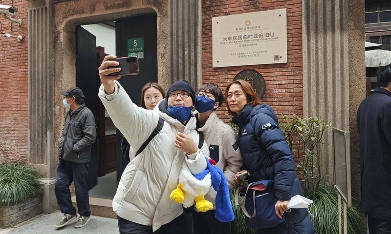 South Korean tourists take photos at the Site of the Korean Provisional Government in Shanghai on January 11, 2025. Photo: VCG