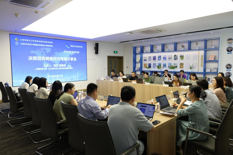 9月25日下午,上海财经大学杨羊副教授受邀在长宁校区做主题为“调查研究的实践路径与成果转化”的讲座。上海市教卫工作党委决策咨询研究基地(国际经贸创新治理,以下简称“001基地”)学员以及来自华东师范大学、同济大学、上海大学、上海财经大学、华东政法大学和我校各二级学院/研究院的近30名青年教师参加。讲座由我校特聘研究员程灵芝主持。