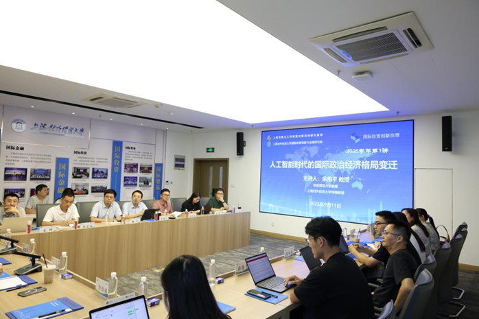 9月11日下午,华东师范大学政治与国际关系学院教授、上海对外经贸大学特聘教授余南平应邀于上海对外经贸大学长宁校区做主题为“人工智能时代的国际政治经济格局变迁”的讲座。上海市教卫工作党委决策咨询研究基地(国际经贸创新治理,以下简称“001基地”)第一期、第二期上海高校决策咨询青年骨干以及来自复旦大学、上海财经大学、上海大学和我校国际经贸学院、金融管理学院、会展与传播学院、国际组织学院(贸易谈判学院)、国际经贸创新与治理研究院的青年学者参加。讲座由我校特聘研究员、001基地导师程灵芝主持。